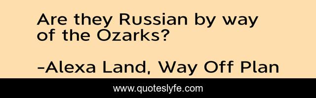 This page presents the quote "Are they Russian by way of the Ozarks?". Author of this quote is Alexa Land, Way Off Plan. This quote is about kissing-cousins, inbreeding, mafia, russian, hilarious,.