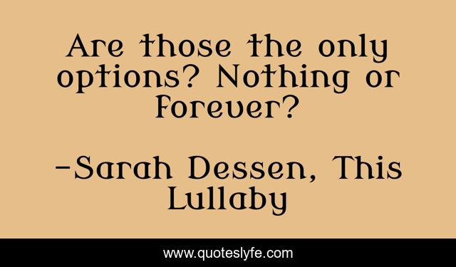 "Sarah Dessen, This Lullaby Quotes." Quoteslyfe.com, 2025. Fri. 05 Dec. 2025. <https://www.quoteslyfe.com/quote/Are-those-the-only-options-Nothing-or-1252>.