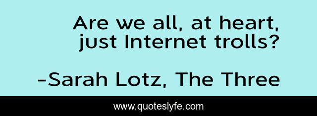 This page presents the quote "Are we all, at heart, just Internet trolls?". Author of this quote is Sarah Lotz, The Three. This quote is about trolls, internet,.
