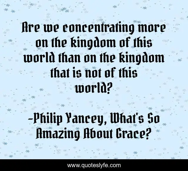 "Philip Yancey, What's So Amazing About Grace? Quotes." Quoteslyfe.com, 2025. Sun. 07 Dec. 2025. <https://www.quoteslyfe.com/quote/Are-we-concentrating-more-on-the-kingdom-227329>.