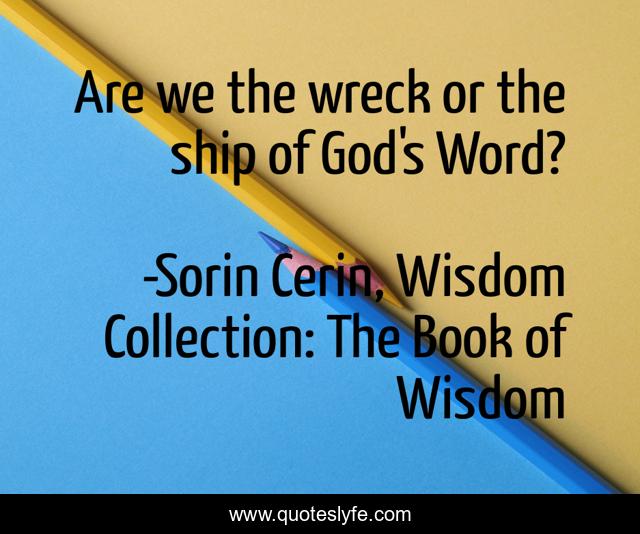 This page presents the quote "Are we the wreck or the ship of God's Word?". Author of this quote is Sorin Cerin, Wisdom Collection: The Book of Wisdom. This quote is about god, word,.