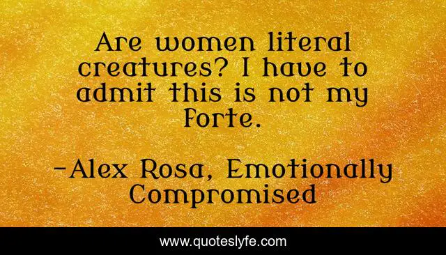 "Alex Rosa, Emotionally Compromised Quotes." Quoteslyfe.com, 2025. Tue. 09 Dec. 2025. <https://www.quoteslyfe.com/quote/Are-women-literal-creatures-I-have-to-216209>.