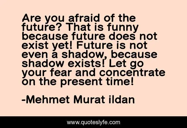 This page presents the quote "Are you afraid of the future? That is funny because future does not exist yet! Future is not even a shadow, because shadow exists! Let go your fear and concentrate on the present time!". Author of this quote is Mehmet Murat ildan. This quote is about funny, murat-ildan, future, exist, let-go, comedy, present-time,.
