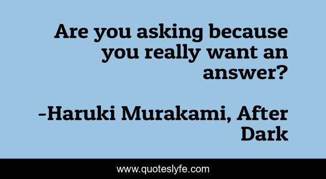 This page presents the quote "Are you asking because you really want an answer?". Author of this quote is Haruki Murakami, After Dark. This quote is about answers, questions,.