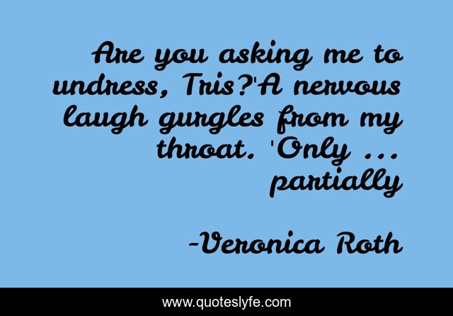 This page presents the quote "Are you asking me to undress, Tris?'A nervous laugh gurgles from my throat. 'Only ... partially". Author of this quote is Veronica Roth. This quote is about tattoo, love, beatrice-prior, sweet, tobias-eaton, four, veronica-roth, tobias-and-tris, affection,.
