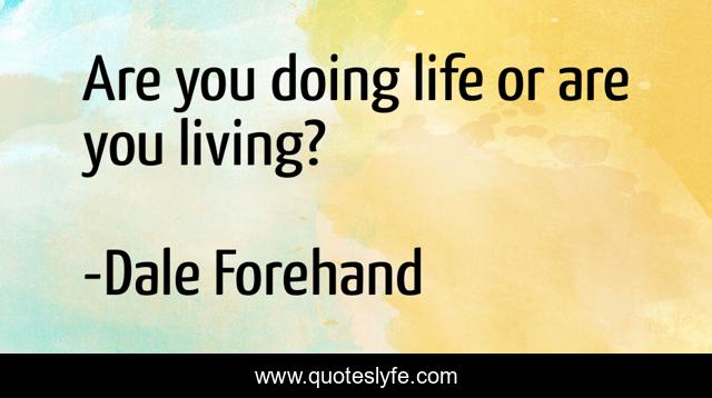 "Dale Forehand Quotes." Quoteslyfe.com, 2025. Sat. 06 Dec. 2025. <https://www.quoteslyfe.com/quote/Are-you-doing-life-or-are-you-105136>.