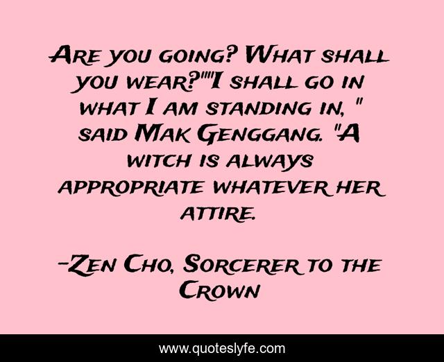 "Zen Cho, Sorcerer to the Crown Quotes." Quoteslyfe.com, 2025. Mon. 08 Dec. 2025. <https://www.quoteslyfe.com/quote/Are-you-going-What-shall-you-wear-133655>.