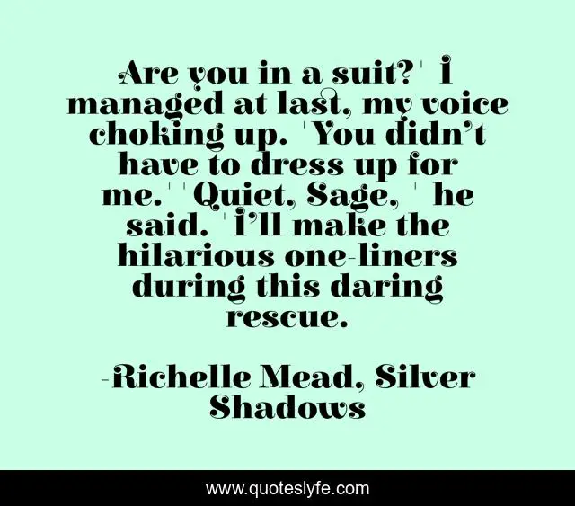 "Richelle Mead, Silver Shadows Quotes." Quoteslyfe.com, 2025. Sun. 07 Dec. 2025. <https://www.quoteslyfe.com/quote/Are-you-in-a-suit-I-managed-40397>.