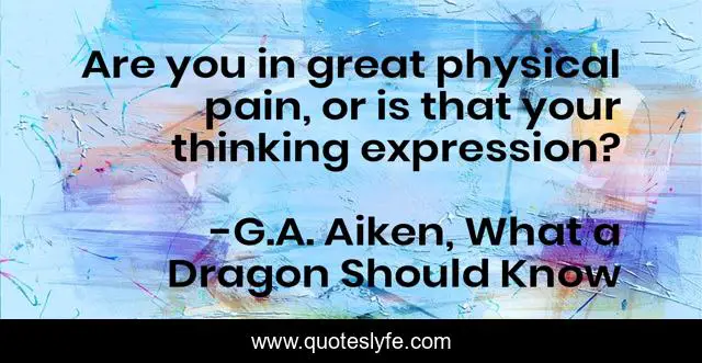 This page presents the quote "Are you in great physical pain, or is that your thinking expression?". Author of this quote is G.A. Aiken, What a Dragon Should Know. This quote is about thinking, put-downs, insults,.