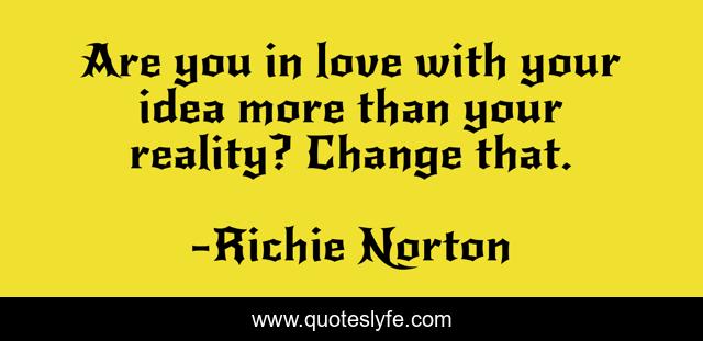 This page presents the quote "Are you in love with your idea more than your reality? Change that.". Author of this quote is Richie Norton. This quote is about change-that, change-management, love, startup-life, self-mastery, your-reality-is-your-own-making, affection, change-your-life, startup,.