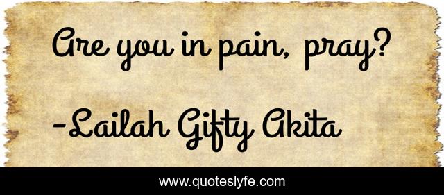 This page presents the quote "Are you in pain, pray?". Author of this quote is Lailah Gifty Akita. This quote is about pray, enthusiasm, pain, inspirational,.