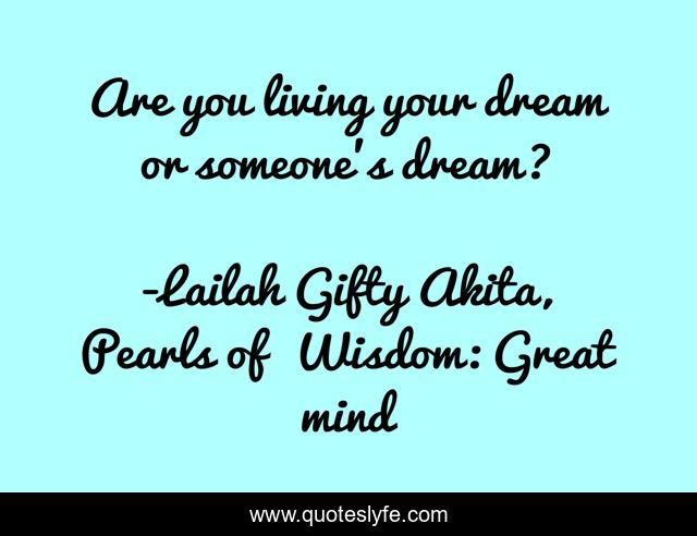 "Lailah Gifty Akita, Pearls of Wisdom: Great mind Quotes." Quoteslyfe.com, 2025. Tue. 09 Dec. 2025. <https://www.quoteslyfe.com/quote/Are-you-living-your-dream-or-someone-54181>.