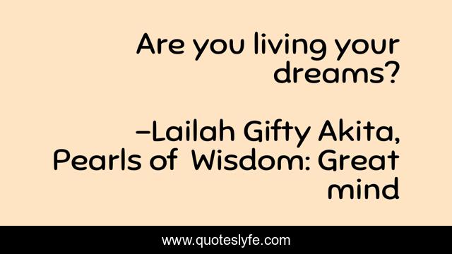 "Lailah Gifty Akita, Pearls of Wisdom: Great mind Quotes." Quoteslyfe.com, 2025. Sun. 07 Dec. 2025. <https://www.quoteslyfe.com/quote/Are-you-living-your-dreams-54182>.