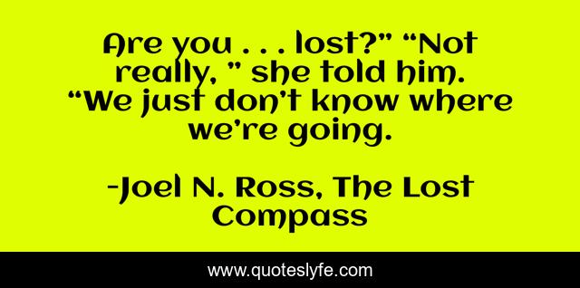 "Joel N. Ross, The Lost Compass Quotes." Quoteslyfe.com, 2025. Fri. 05 Dec. 2025. <https://www.quoteslyfe.com/quote/Are-you-lost-Not-really-she-told-41627>.