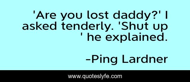 This page presents the quote "'Are you lost daddy?' I asked tenderly. 'Shut up ' he explained.". Author of this quote is Ping Lardner. This quote is about quips, comments,.