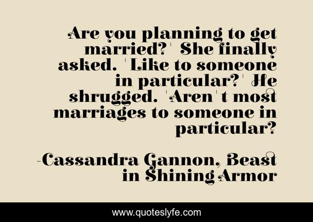 "Cassandra Gannon, Beast in Shining Armor Quotes." Quoteslyfe.com, 2025. Fri. 05 Dec. 2025. <https://www.quoteslyfe.com/quote/Are-you-planning-to-get-married-She-77275>.