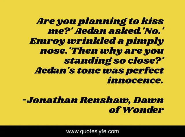 "Jonathan Renshaw, Dawn of Wonder Quotes." Quoteslyfe.com, 2025. Sun. 07 Dec. 2025. <https://www.quoteslyfe.com/quote/Are-you-planning-to-kiss-me-Aedan-196925>.