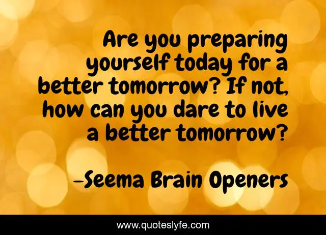 This page presents the quote "Are you preparing yourself today for a better tomorrow? If not, how can you dare to live a better tomorrow?". Author of this quote is Seema Brain Openers. This quote is about preparation, life, successful-living,.