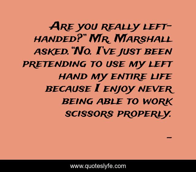 " Quotes." Quoteslyfe.com, 2025. Fri. 05 Dec. 2025. <https://www.quoteslyfe.com/quote/Are-you-really-left-handed-Mr-Marshall-210980>.
