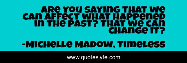 This page presents the quote "Are you saying that we can affect what happened in the past? That we can change it?". Author of this quote is Michelle Madow, Timeless. This quote is about time-travel, time-travel-romance, time-traveling,.