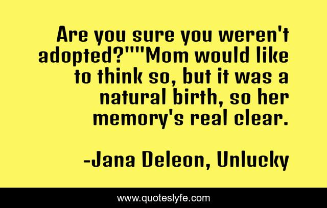 This page presents the quote "Are you sure you weren't adopted?""Mom would like to think so, but it was a natural birth, so her memory's real clear.". Author of this quote is Jana Deleon, Unlucky. This quote is about humor, birth,.