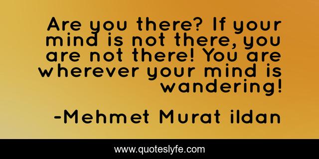 This page presents the quote "Are you there? If your mind is not there, you are not there! You are wherever your mind is wandering!". Author of this quote is Mehmet Murat ildan. This quote is about mind, wandering, ildan-wise-sayings,.