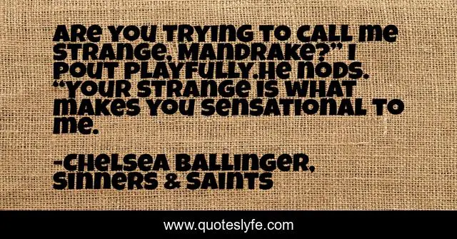 This page presents the quote "Are you trying to call me strange, Mandrake?” I pout playfully.He nods. “Your strange is what makes you sensational to me.". Author of this quote is Chelsea Ballinger, Sinners & Saints. This quote is about new-adult-romance, love, strange, passion, affection,.