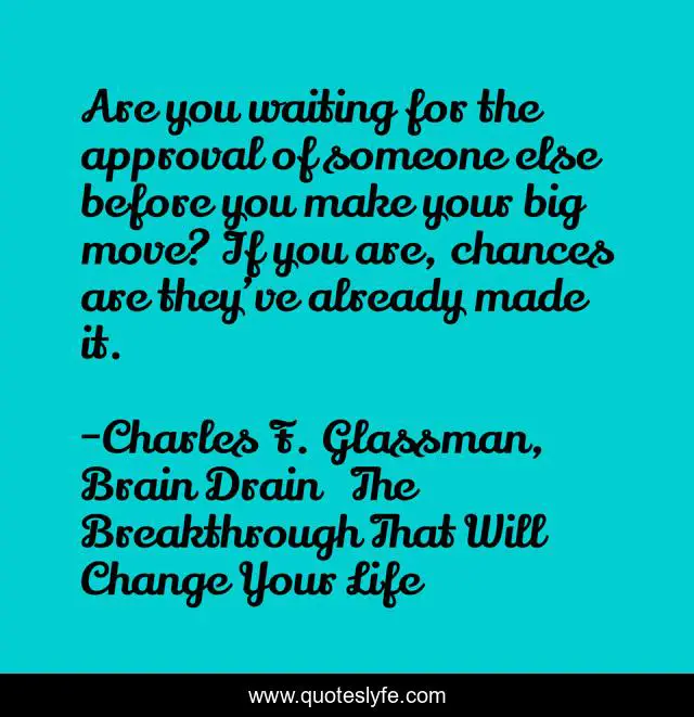 "Charles F. Glassman, Brain Drain The Breakthrough That Will Change Your Life Quotes." Quoteslyfe.com, 2025. Fri. 05 Dec. 2025. <https://www.quoteslyfe.com/quote/Are-you-waiting-for-the-approval-of-157907>.
