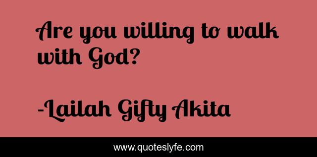 "Lailah Gifty Akita Quotes." Quoteslyfe.com, 2025. Sat. 06 Dec. 2025. <https://www.quoteslyfe.com/quote/Are-you-willing-to-walk-with-God-67869>.