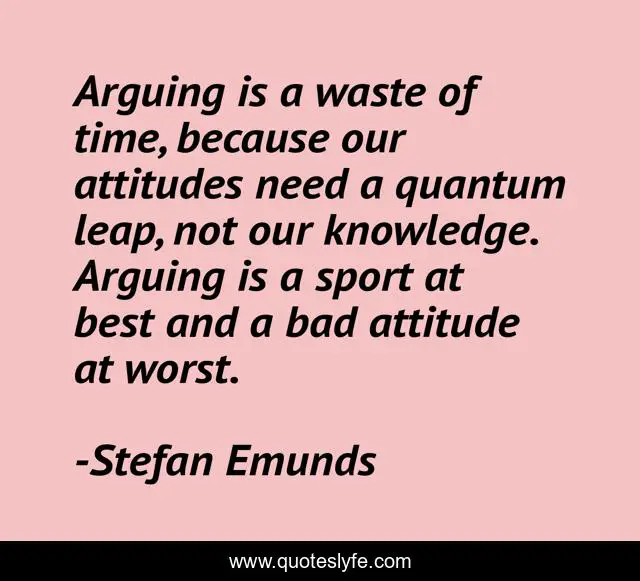 Arguing is a waste of time, because our attitudes need a quantum leap, not our knowledge. Arguing is a sport at best and a bad attitude at worst.