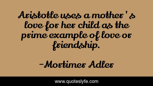 This page presents the quote "Aristotle uses a mother's love for her child as the prime example of love or friendship.". Author of this quote is Mortimer Adler. This quote is about mother, love, affection, child,.