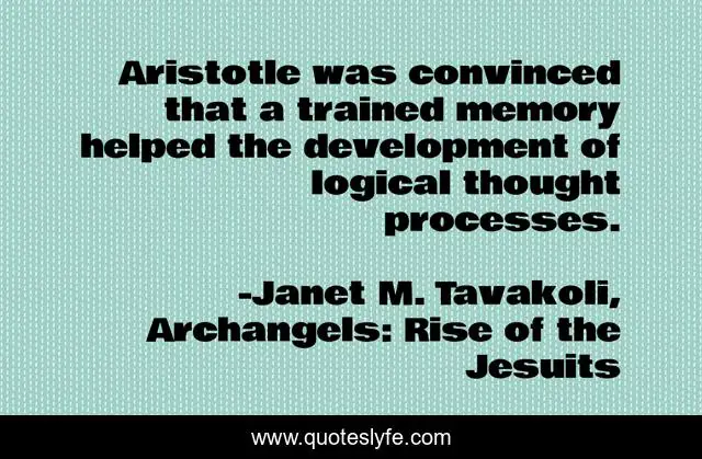 This page presents the quote "Aristotle was convinced that a trained memory helped the development of logical thought processes.". Author of this quote is Janet M. Tavakoli, Archangels: Rise of the Jesuits. This quote is about logic, archangels-rise-of-the-jesuits, aristotle, memory,.