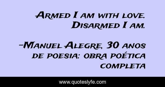 "Manuel Alegre, 30 anos de poesia: obra poética completa Quotes." Quoteslyfe.com, 2025. Fri. 05 Dec. 2025. <https://www.quoteslyfe.com/quote/Armed-I-am-with-love-Disarmed-I-24748>.