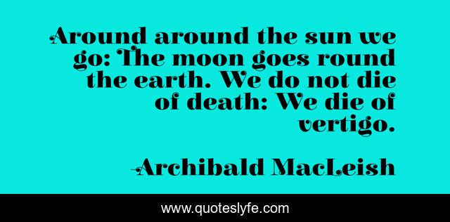 This page presents the quote "Around around the sun we go: The moon goes round the earth. We do not die of death: We die of vertigo.". Author of this quote is Archibald MacLeish. This quote is about death, dying,.