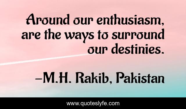 This page presents the quote "Around our enthusiasm, are the ways to surround our destinies.". Author of this quote is M.H. Rakib, Pakistan. This quote is about pakistan, destinies, quote, 14august, muslims, freedom, enthusiasm,.