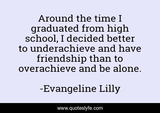 This page presents the quote "Around the time I graduated from high school, I decided better to underachieve and have friendship than to overachieve and be alone.". Author of this quote is Evangeline Lilly. This quote is about alone, school, time,.