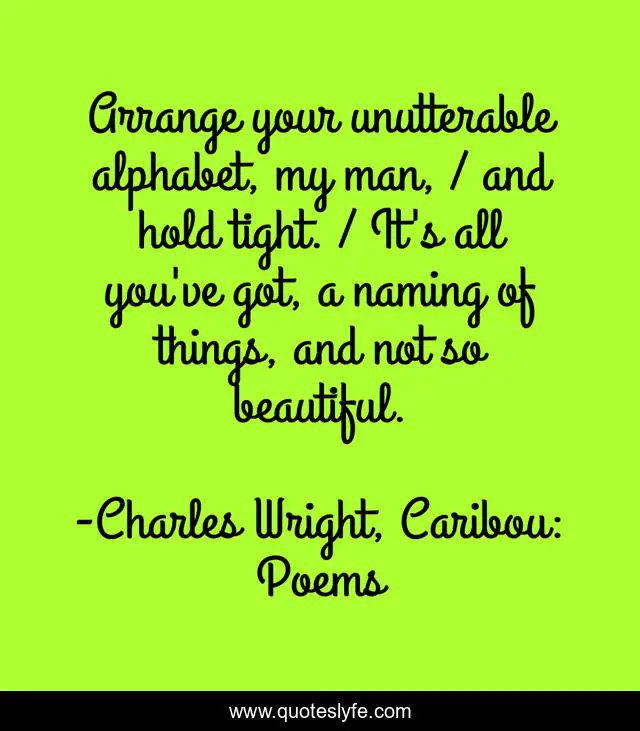 "Charles Wright, Caribou: Poems Quotes." Quoteslyfe.com, 2025. Fri. 05 Dec. 2025. <https://www.quoteslyfe.com/quote/Arrange-your-unutterable-alphabet-my-man-and-113212>.