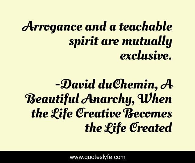 "David duChemin, A Beautiful Anarchy, When the Life Creative Becomes the Life Created Quotes." Quoteslyfe.com, 2025. Fri. 05 Dec. 2025. <https://www.quoteslyfe.com/quote/Arrogance-and-a-teachable-spirit-are-mutually-117330>.