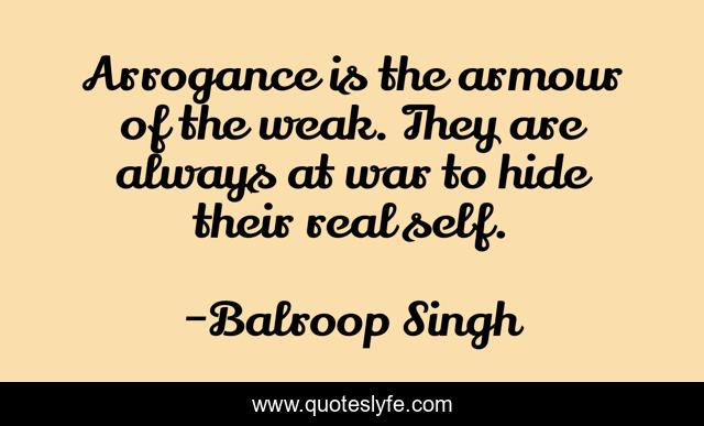 "Balroop Singh Quotes." Quoteslyfe.com, 2025. Mon. 08 Dec. 2025. <https://www.quoteslyfe.com/quote/Arrogance-is-the-armour-of-the-weak-147673>.