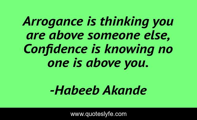 This page presents the quote "Arrogance is thinking you are above someone else, Confidence is knowing no one is above you.". Author of this quote is Habeeb Akande. This quote is about confidence, arrogance,.