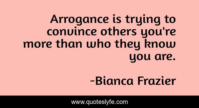 This page presents the quote "Arrogance is trying to convince others you're more than who they know you are.". Author of this quote is Bianca Frazier. This quote is about bianca-frazier, arrogance,.