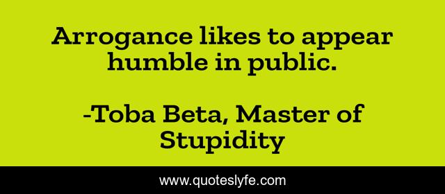 "Toba Beta, Master of Stupidity Quotes." Quoteslyfe.com, 2025. Sat. 06 Dec. 2025. <https://www.quoteslyfe.com/quote/Arrogance-likes-to-appear-humble-in-public-246394>.