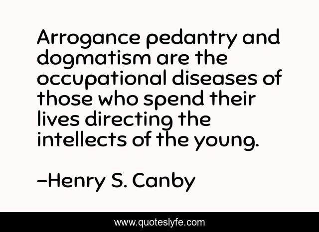 "Henry S. Canby Quotes." Quoteslyfe.com, 2025. Mon. 08 Dec. 2025. <https://www.quoteslyfe.com/quote/Arrogance-pedantry-and-dogmatism-are-the-occupational-263558>.