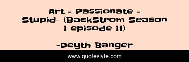 This page presents the quote "Art = Passionate = Stupid- (BackStrom Season 1 episode 11)". Author of this quote is Deyth Banger. This quote is about passionate, stupid, best,.