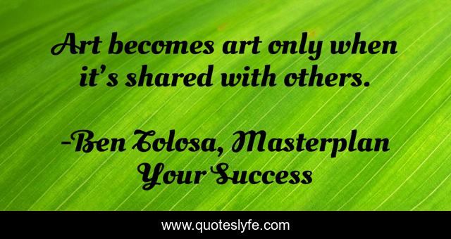 This page presents the quote "Art becomes art only when it’s shared with others.". Author of this quote is Ben Tolosa, Masterplan Your Success. .