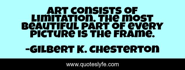 This page presents the quote "Art consists of limitation. The most beautiful part of every picture is the frame.". Author of this quote is Gilbert K. Chesterton. This quote is about beautiful, most beautiful,.