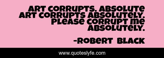 This page presents the quote "Art corrupts. Absolute art corrupts absolutely. Please corrupt me absolutely.". Author of this quote is Robert Black. This quote is about art, corruption,.