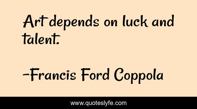 "Francis Ford Coppola Quotes." Quoteslyfe.com, 2025. Tue. 09 Dec. 2025. <https://www.quoteslyfe.com/quote/Art-depends-on-luck-and-talent-318163>.