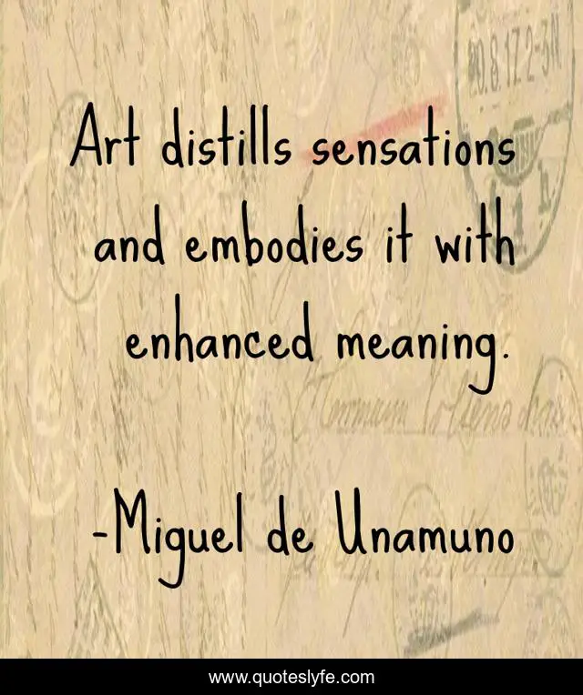"Miguel de Unamuno Quotes." Quoteslyfe.com, 2025. Fri. 05 Dec. 2025. <https://www.quoteslyfe.com/quote/Art-distills-sensations-and-embodies-it-with-318256>.