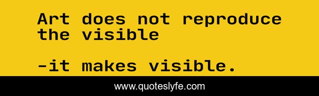 This page presents the quote "Art does not reproduce the visible". Author of this quote is it makes visible.. .